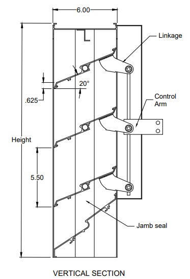 2850 Extruded Aluminum 6" Deep Drainable Blade @ 35° | Blade Type: | Drainable | Frame Material: | Extruded Aluminum | Frame Depth: | 6" | Free Area: | 50.50 | Max Vel.FPM: | 1100 | |